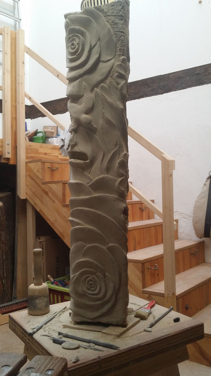 Vom Hobby zur Passion . Das bearbeiten von Sandstein betreibe ich seit 2012 und wurde sofort vom Steinvirus infiziert . Mittlerweile versuche ich auch andere Gesteinsarten kreativ zu gestalten . So halte ich es auch mit den verschiedenen Hölzern . Im Wechsel entstehen dann die Skulpturen oder ich verbinde die Materialien miteinander .