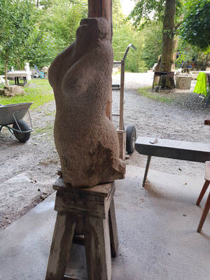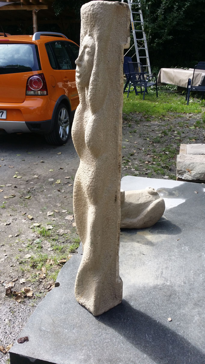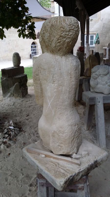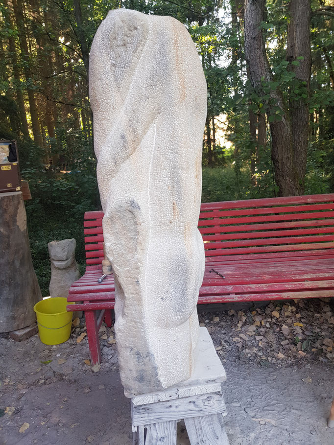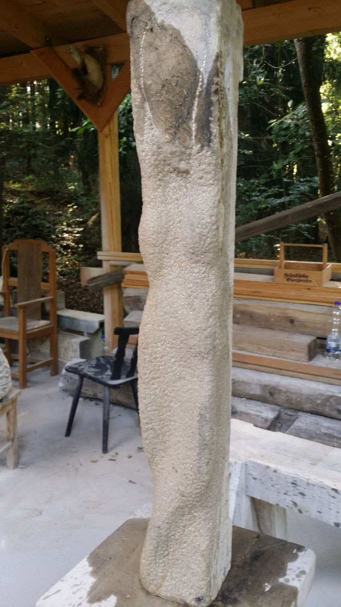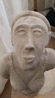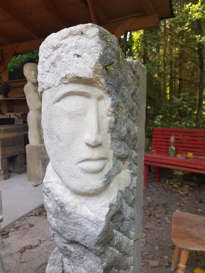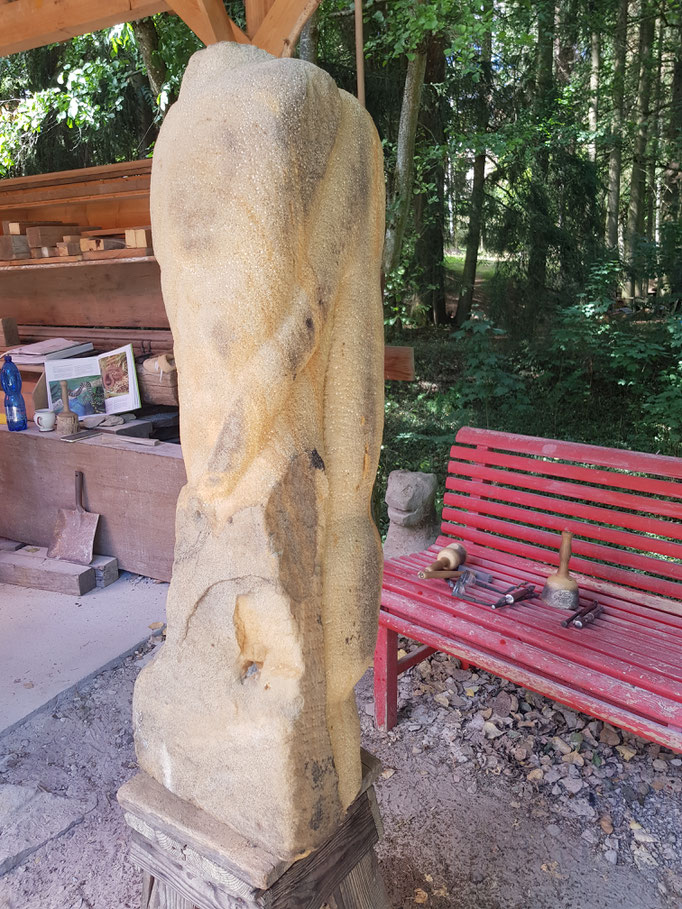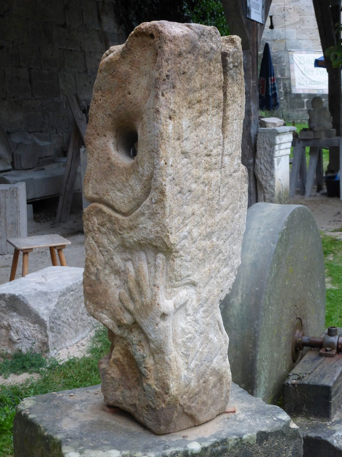 2012 besuchte ich zum Ersten mal aus "Neugierde" die Sandsteinwerkstatt in Kronach und war von der Atmosphäre dort sehr angetan. Der Kursleiter, der akademische Bildhauer Heinrich Schreiber (1935-2016) nahm mich als Steinlaie gerne unter seine Fittiche . Seine väterliche Art durchtränkt mit süffisanntem tiefsinnigen Humor den Kurs zu leiten war richtig wohltuend .Der