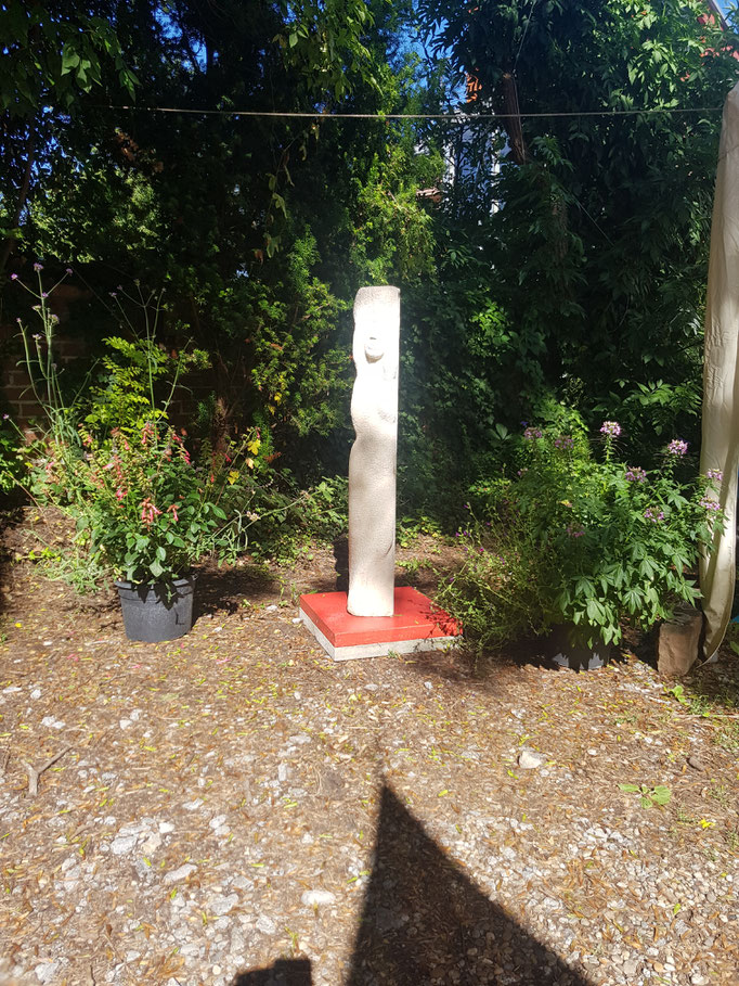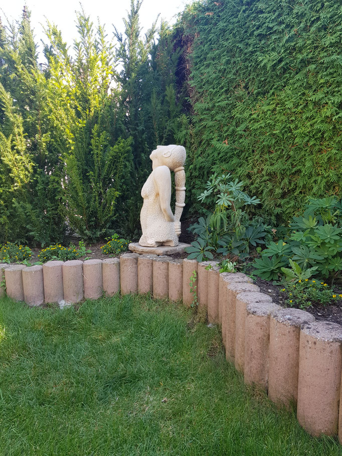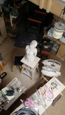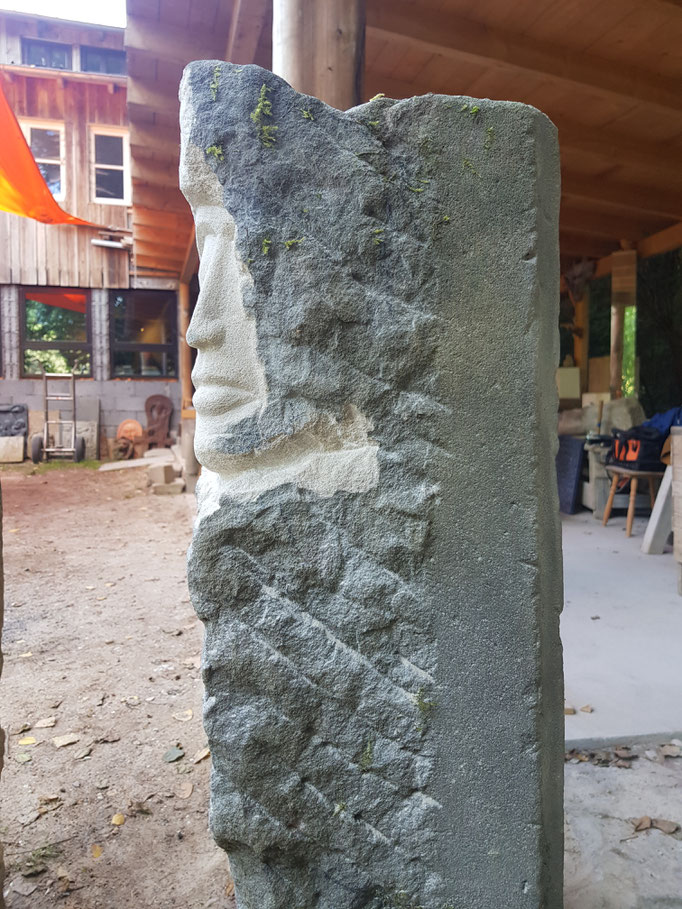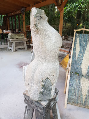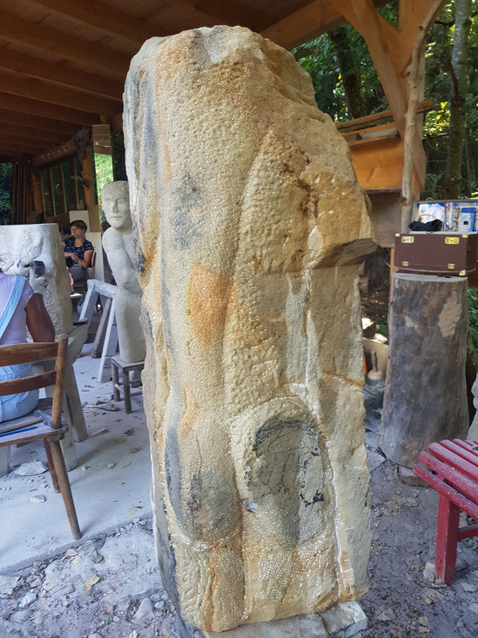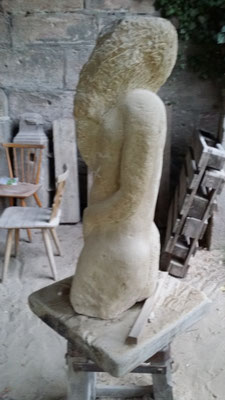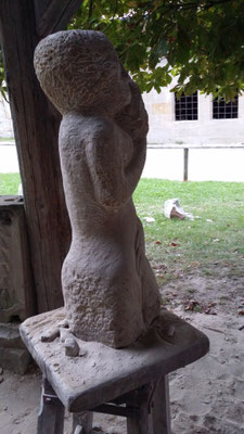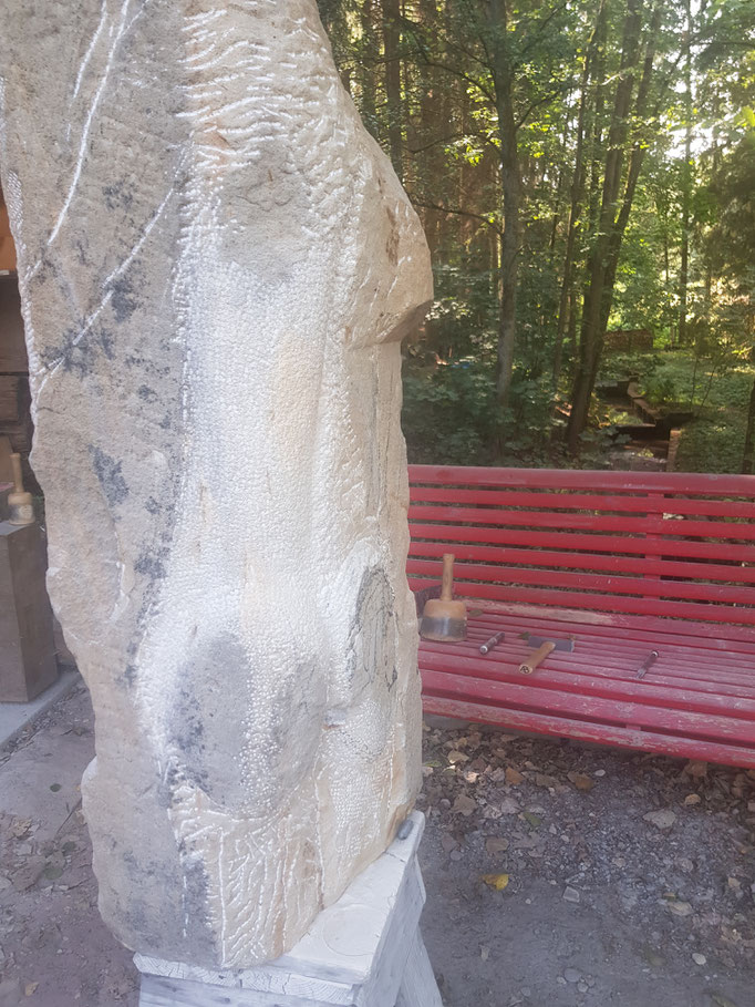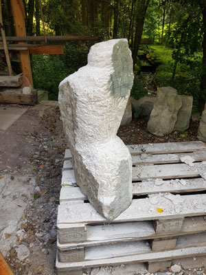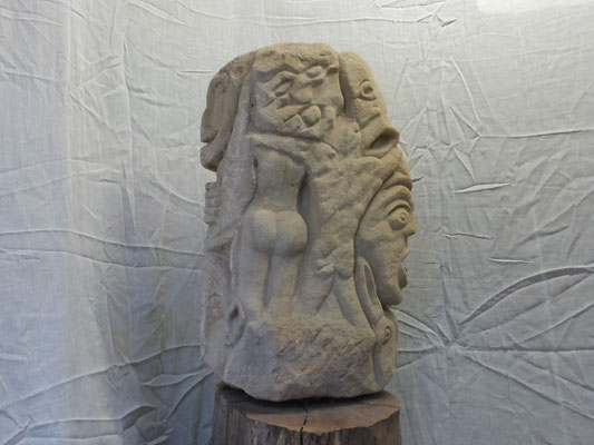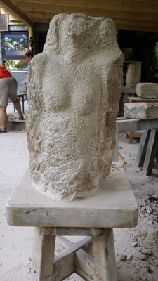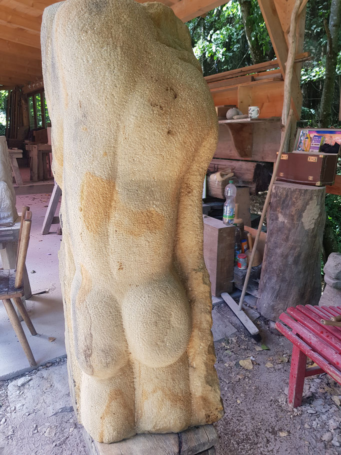 2012 besuchte ich zum Ersten mal aus "Neugierde" die Sandsteinwerkstatt in Kronach und war von der Atmosphäre dort sehr angetan. Der Kursleiter, der akademische Bildhauer Heinrich Schreiber (1935-2016) nahm mich als Steinlaie gerne unter seine Fittiche . Seine väterliche Art durchtränkt mit süffisanntem tiefsinnigen Humor den Kurs zu leiten war richtig wohltuend .Der