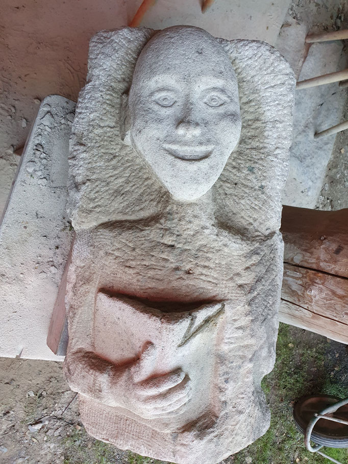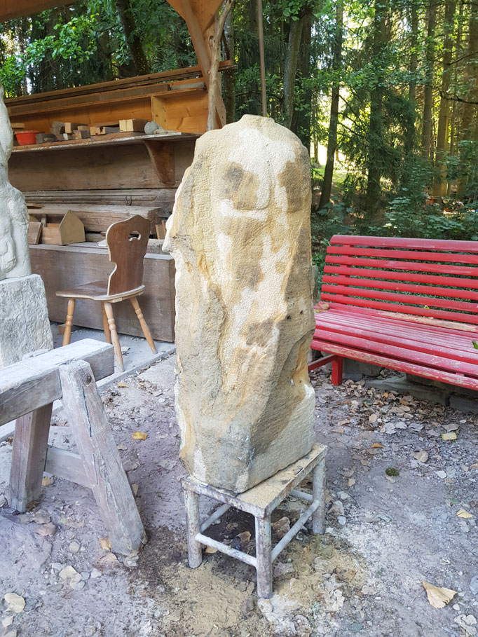 Schwabe,wie er mich gerne nannte wähnte sich am richtigen Orte angekommen . Mittlerweile leitet sein Sohn Tobias, ein wenig anders, aber ebenso mit großem Einsatz die Sandsteinwerkstatt .Das Gesammtpaket stimmt immer noch, deshalb freue ich mich auch immer wieder auf die Zeit im Frankenland .