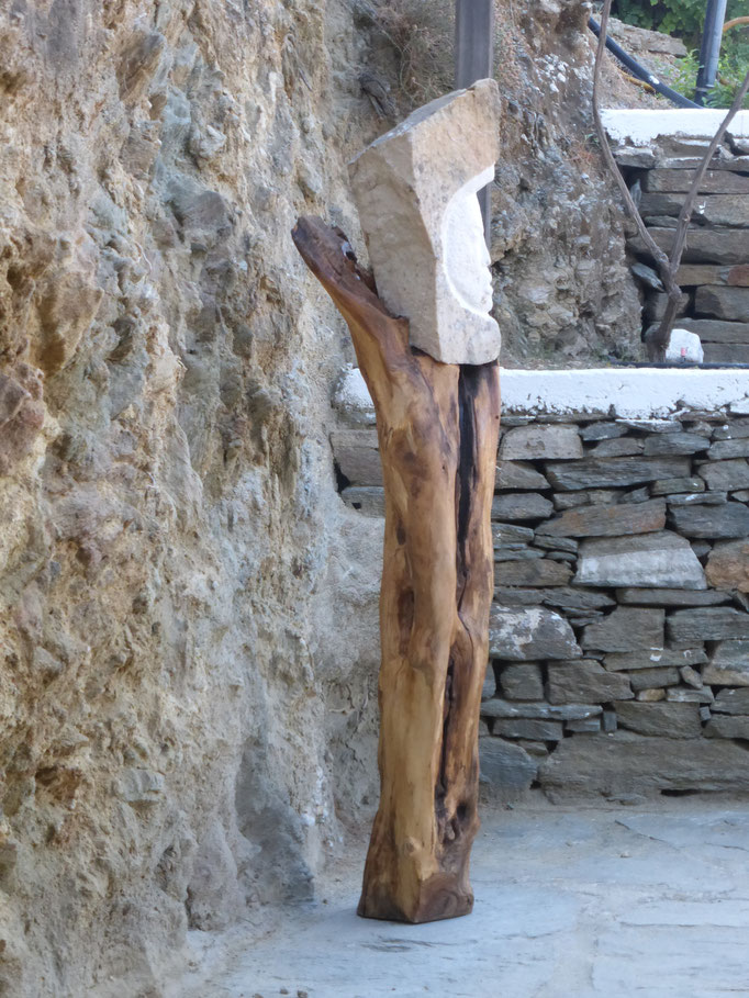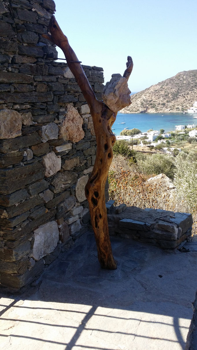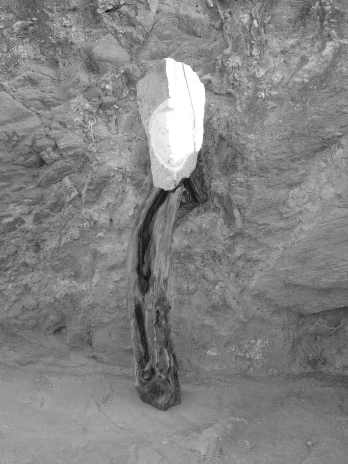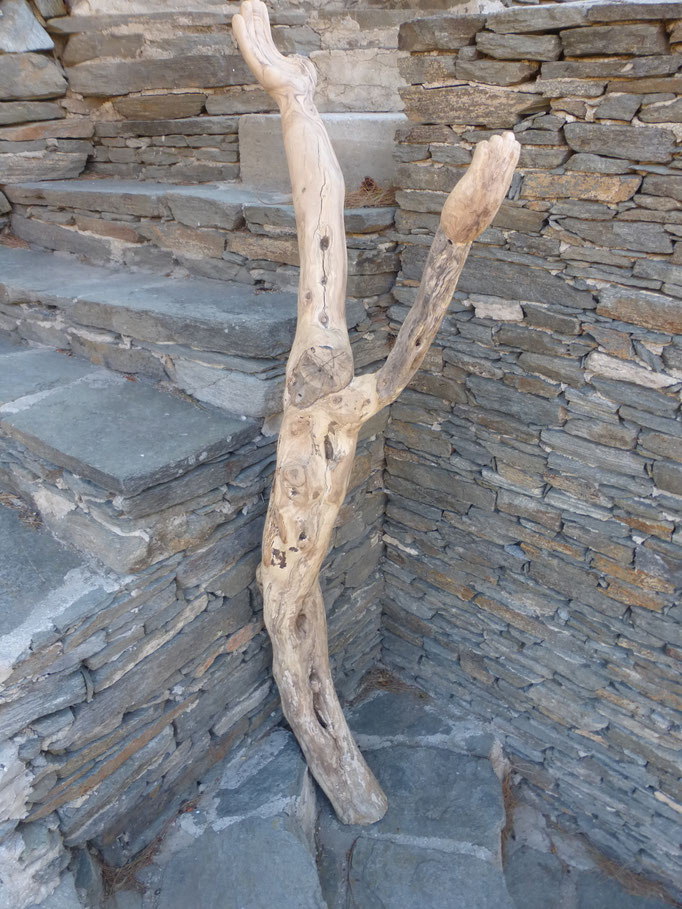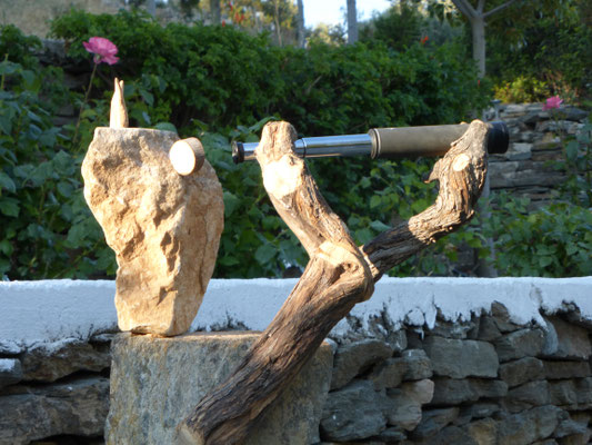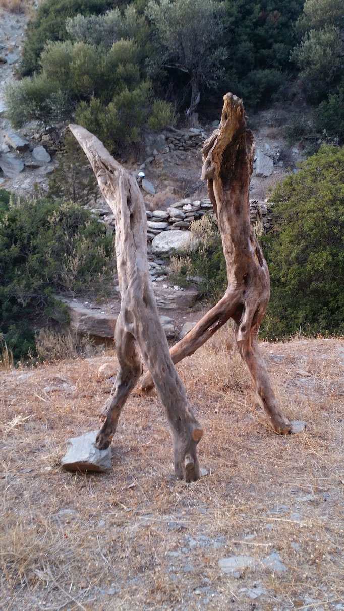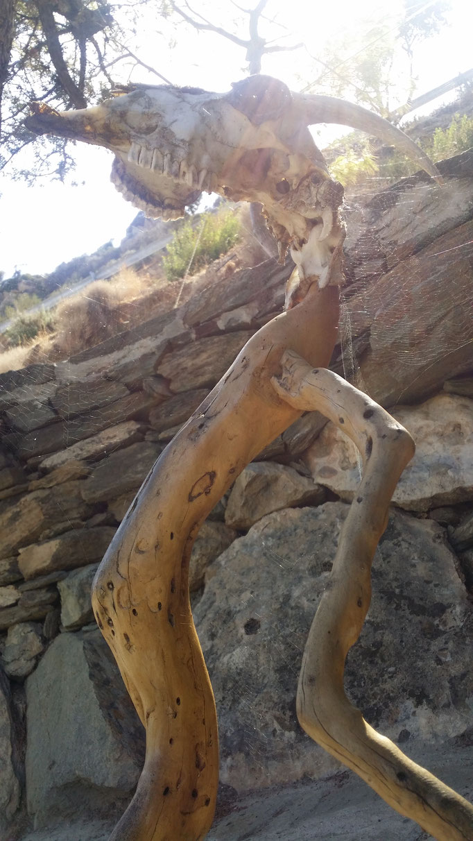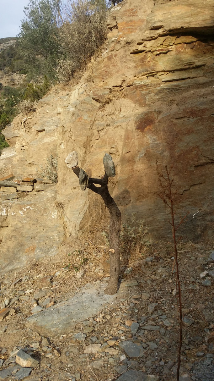 Den abgestorbenen Olivenbaumstamm fand ich im Gestrüpp und den Stein am Strand
