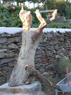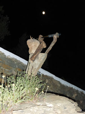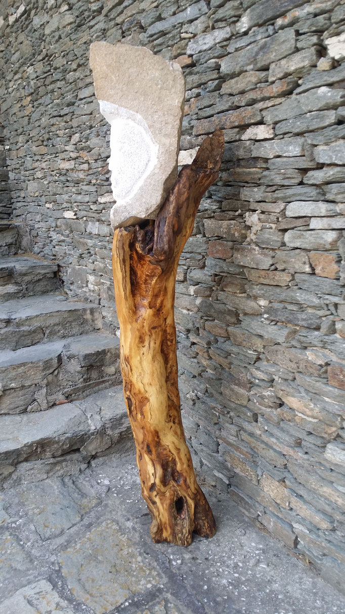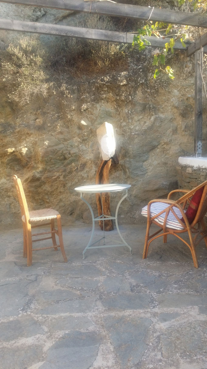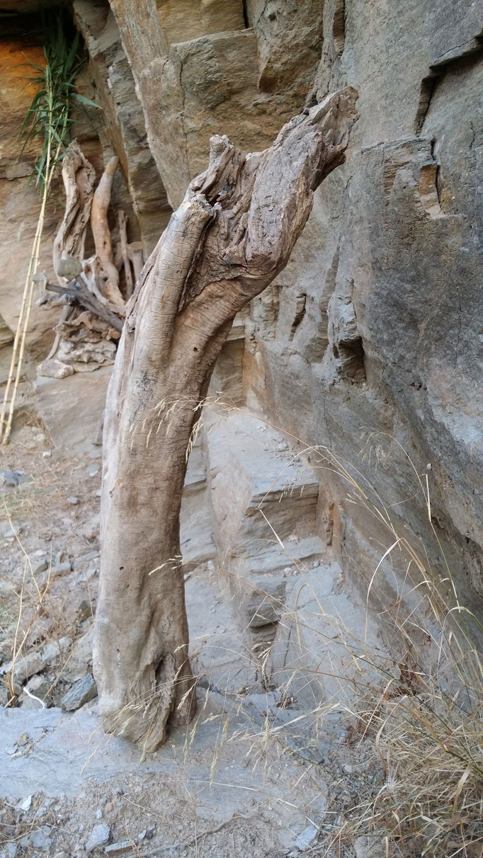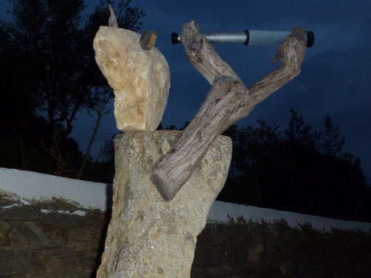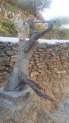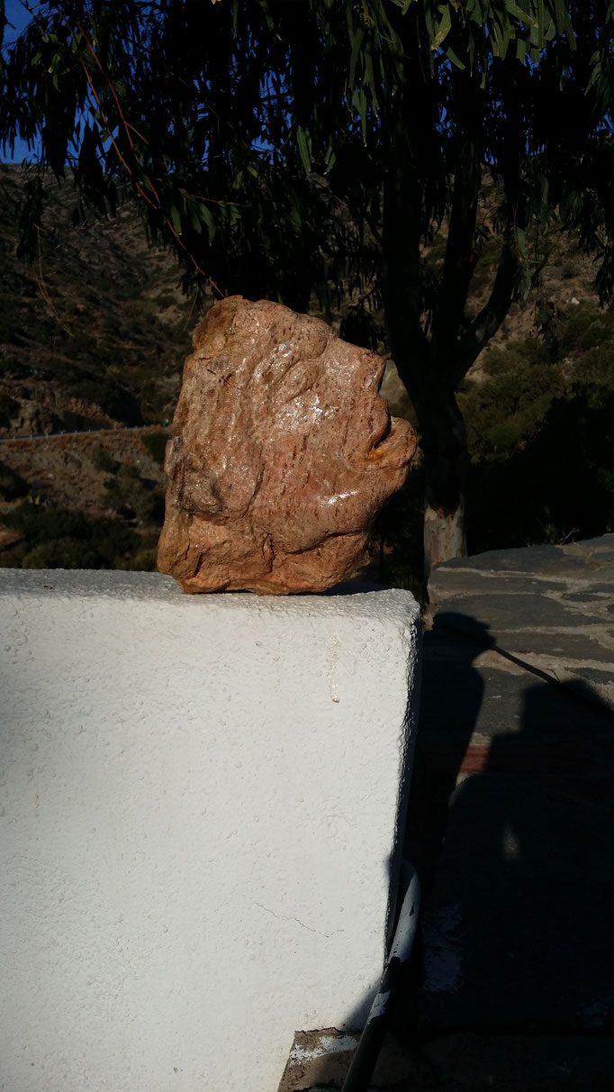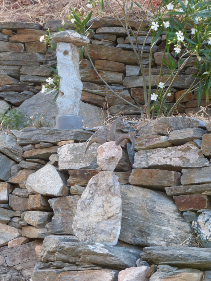 Den abgestorbenen Olivenbaumstamm fand ich im Gestrüpp und den Stein am Strand