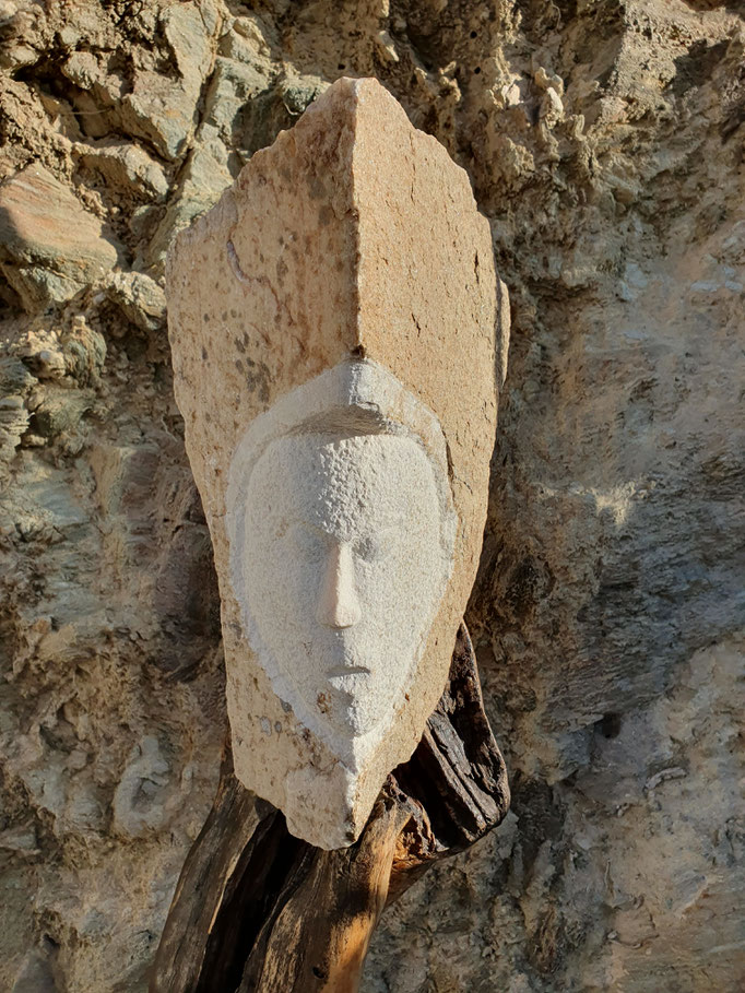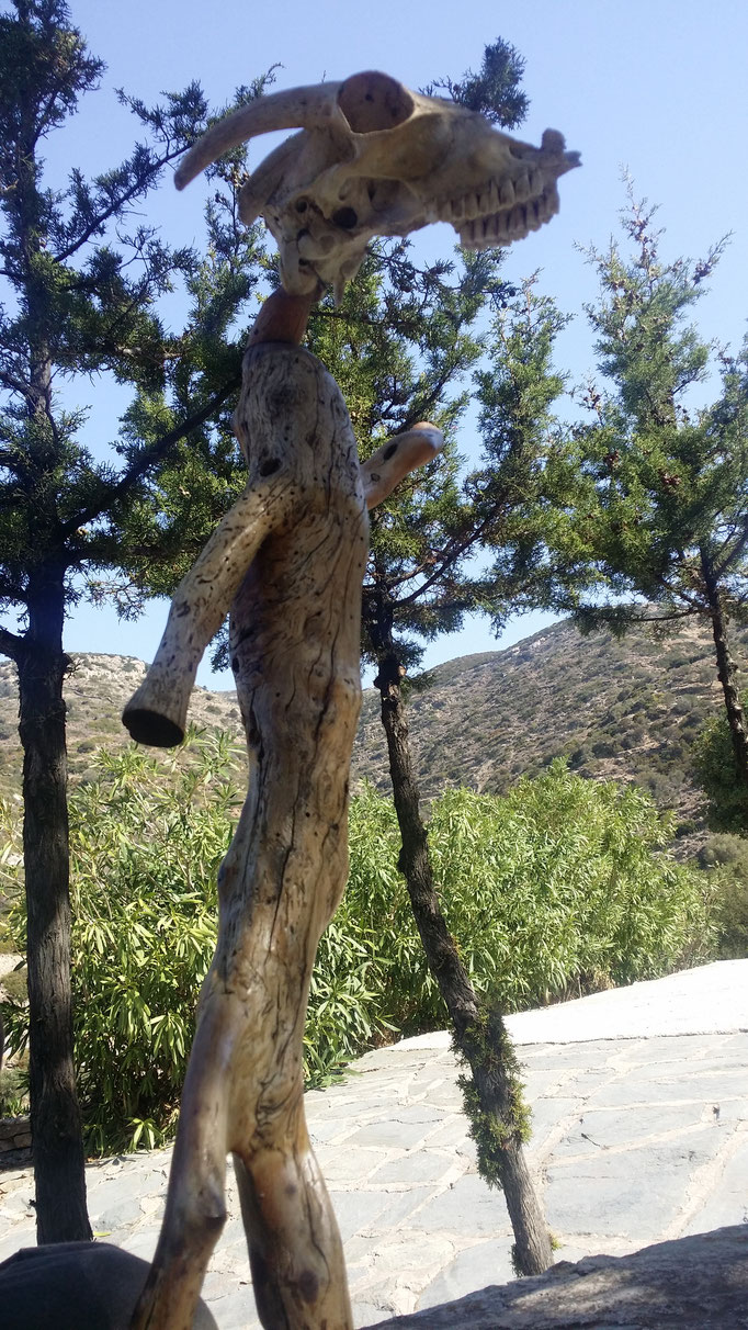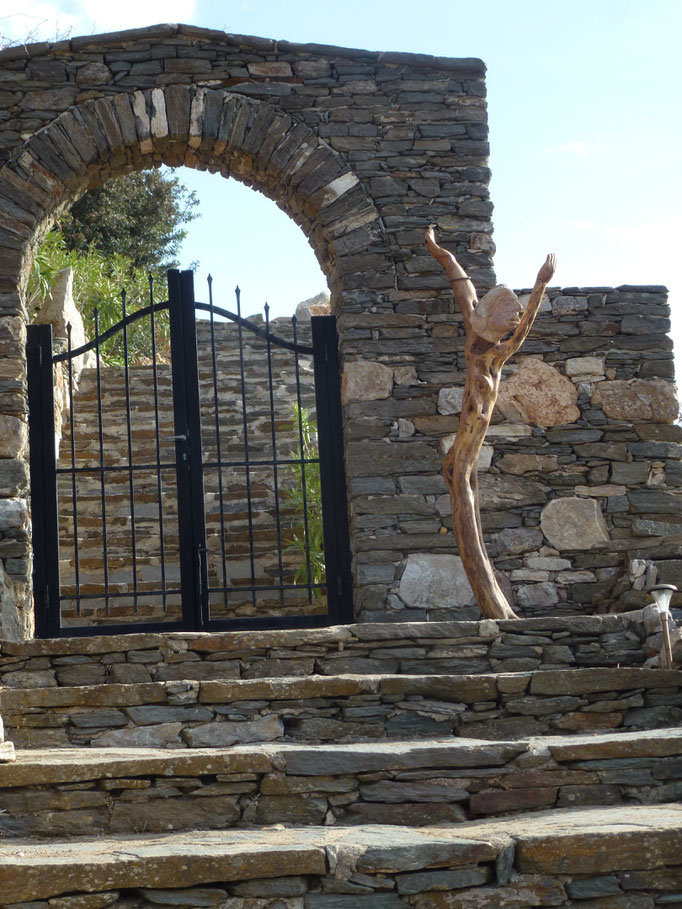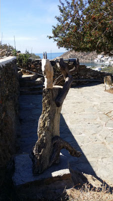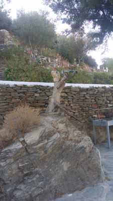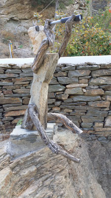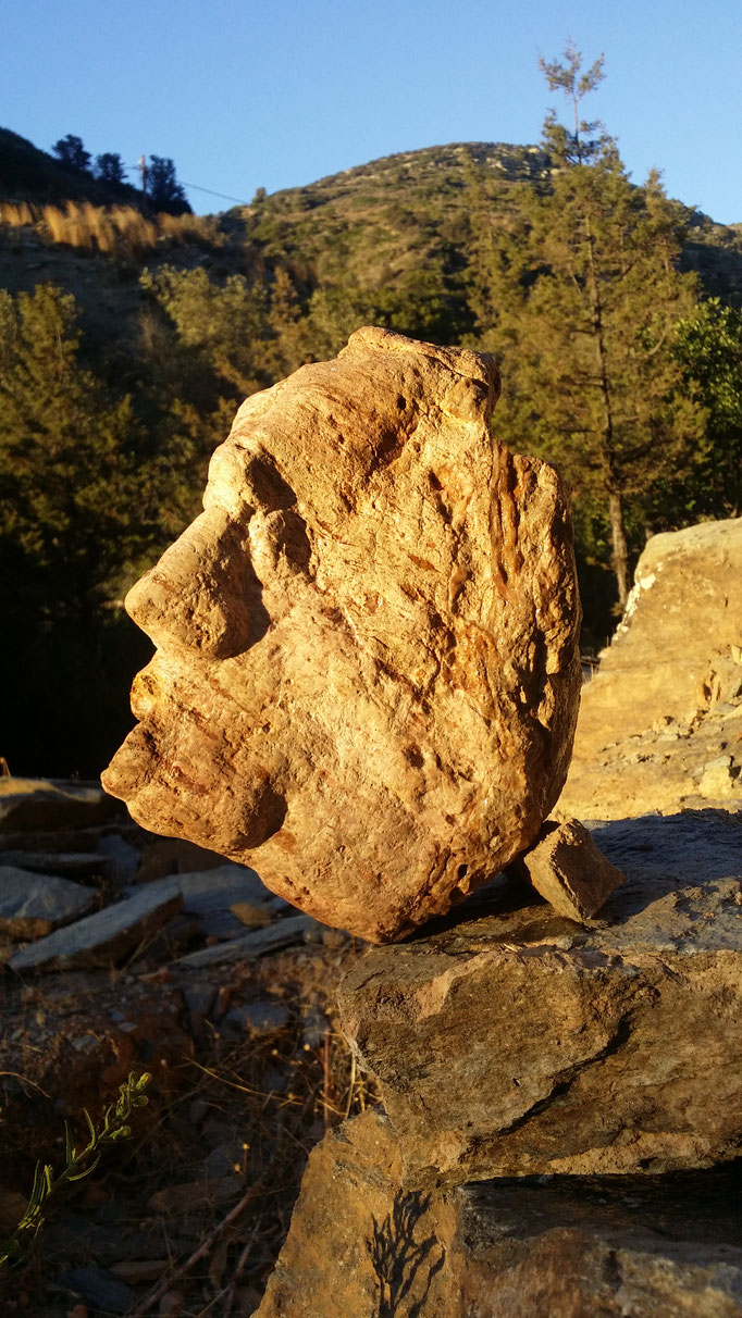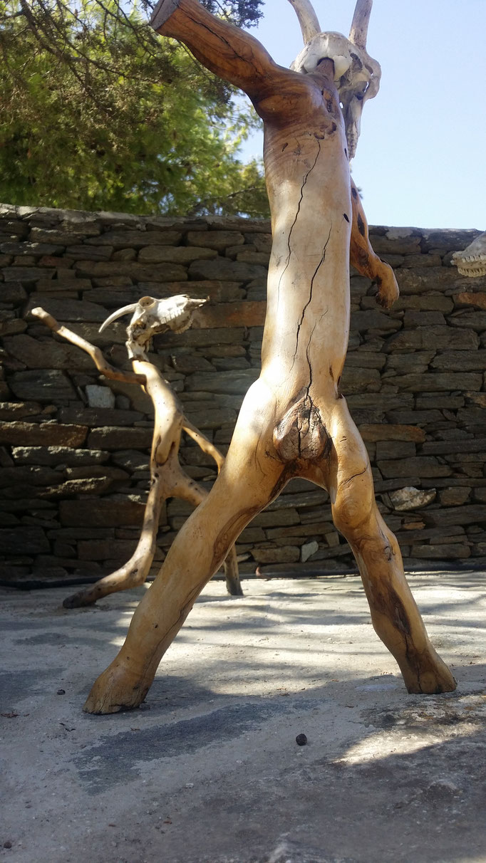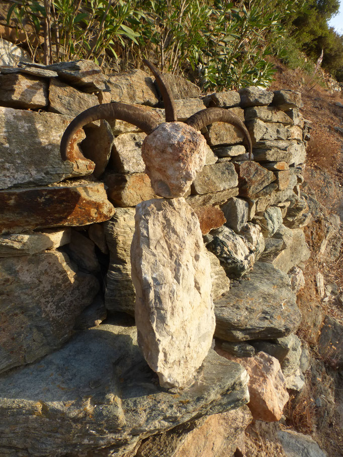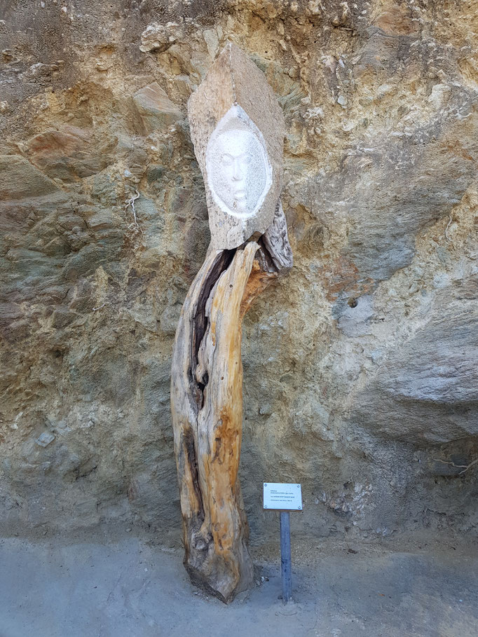 Den abgestorbenen Olivenbaumstamm fand ich im Gestrüpp und den Stein am Strand
