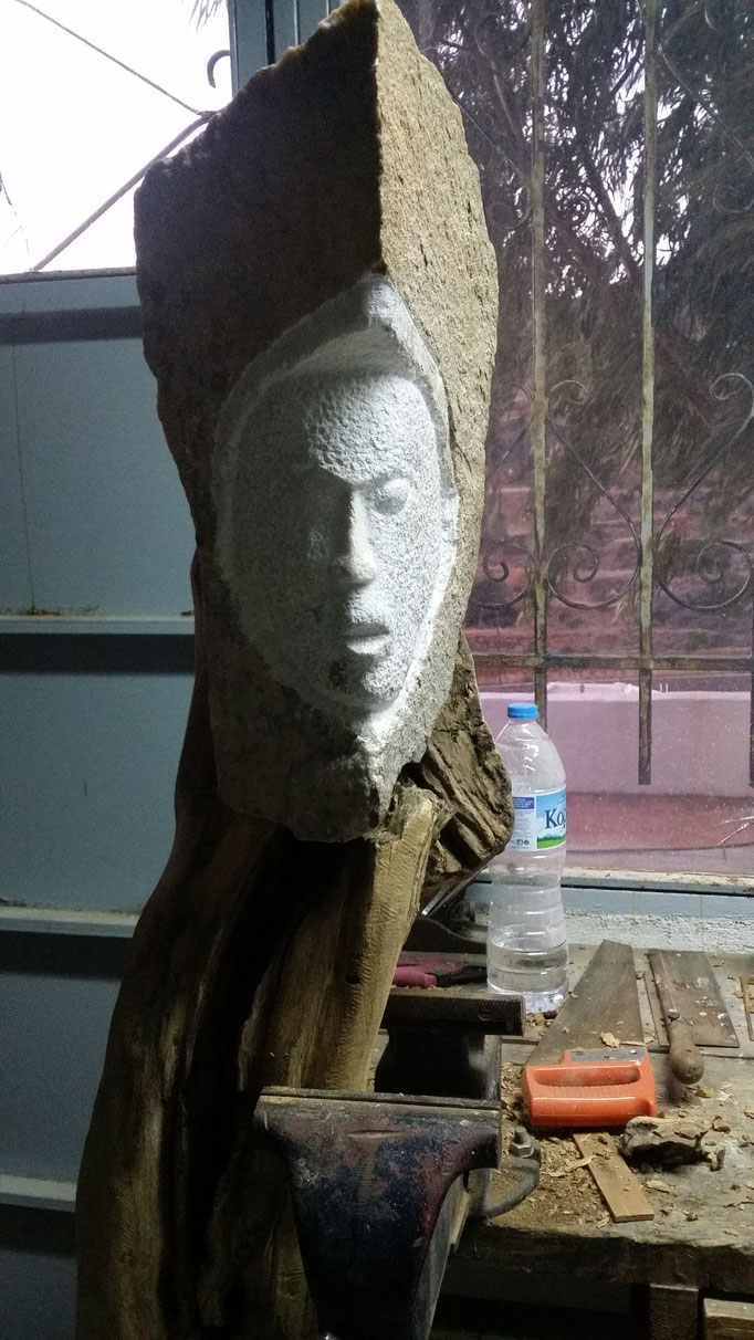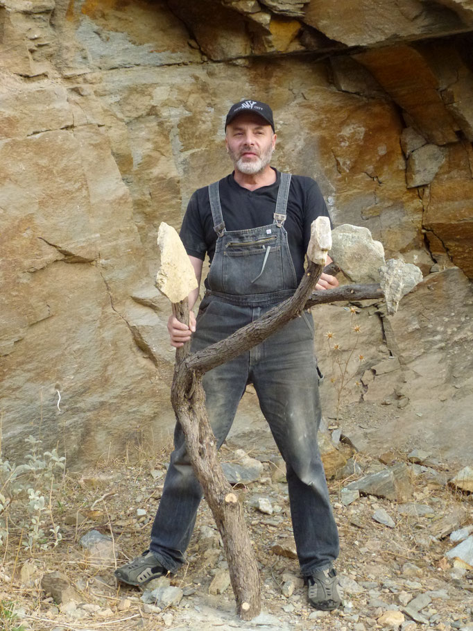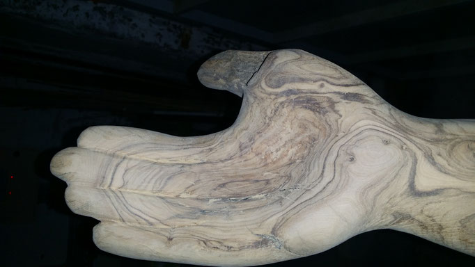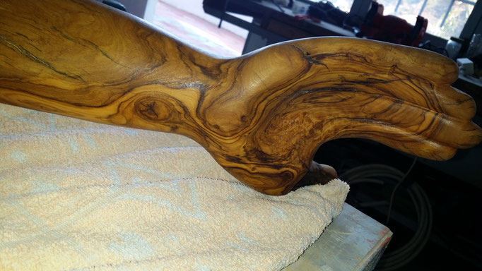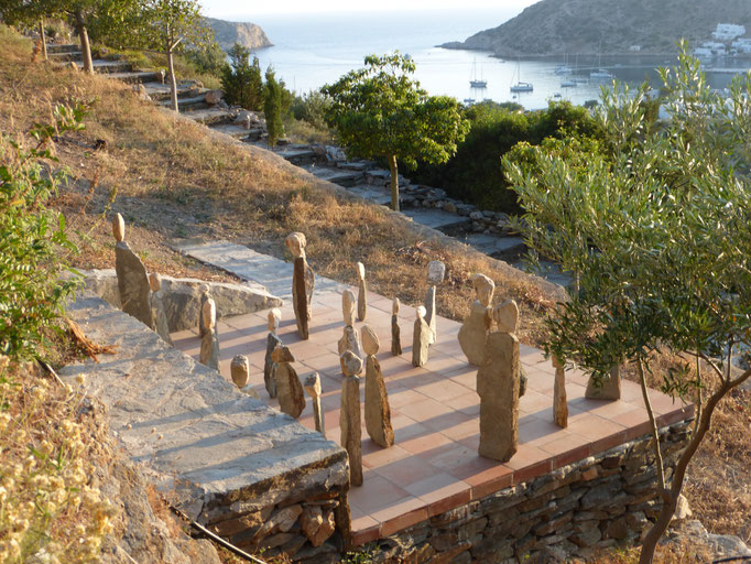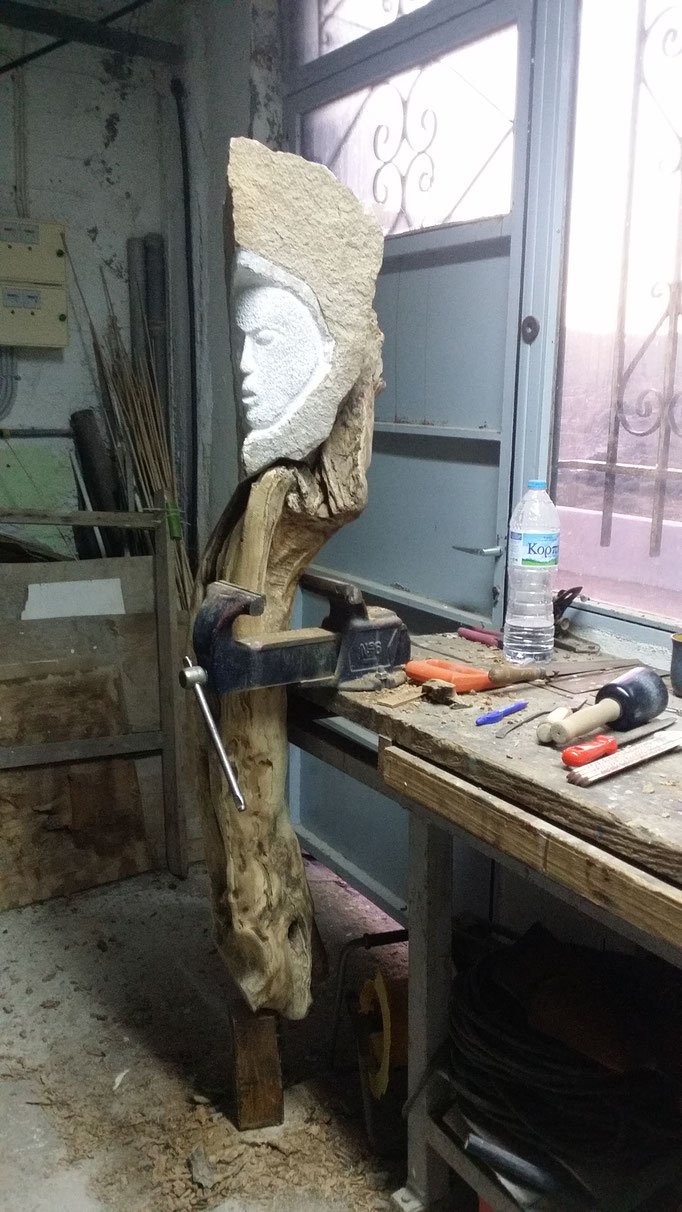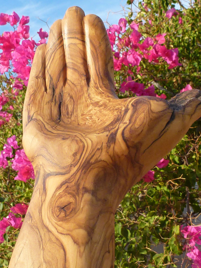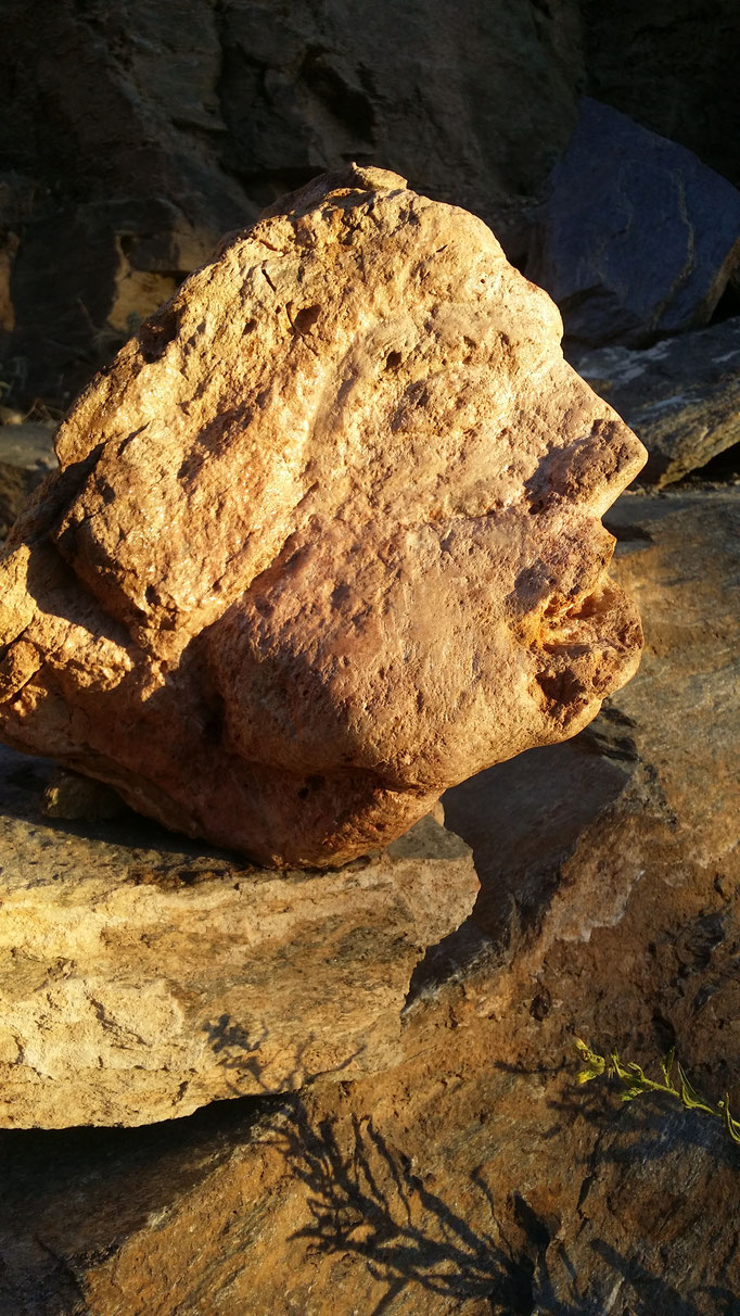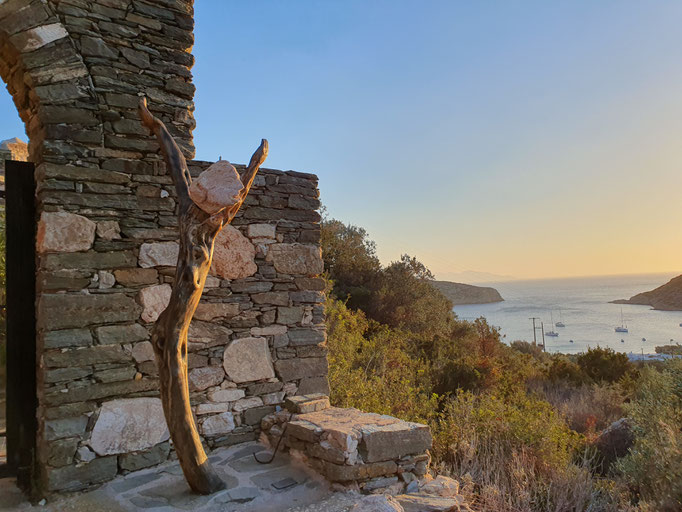 Den abgestorbenen Olivenbaumstamm fand ich im Gestrüpp und den Stein am Strand
